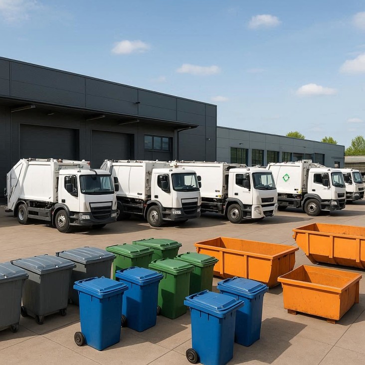 The system accounts for the full operational complexity of waste collection: order types and time windows, vehicle and container constraints including capacities, trailer logistics, disposal site requirements and driver shift and rest time regulations. Plans cover a three-day horizon and update continuously as new orders arrive.