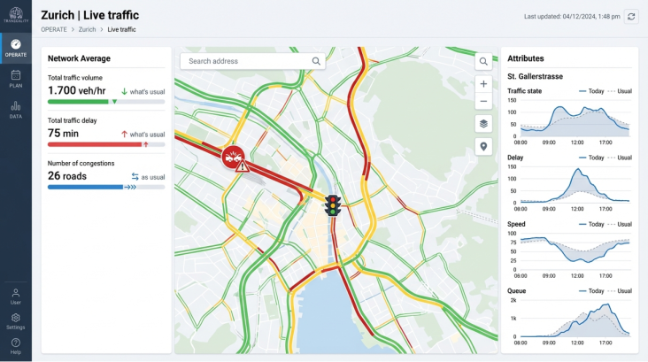 Transcality OPERATE is an innovative, web-based platform that empowers cities, transport operators and agencies to monitor, analyse and manage transportation systems in real time. OPERATE leverages digital twins, live data integration and AI-powered analytics to provide actionable insights for traffic management, public transport reliability and incident response.